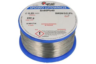 Spoiwo lutownicze; Cynel; 0,25mm; szpulka 0,25kg; LC60/0,25/0,25; Sn60Pb40