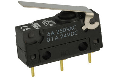 Mikroprzełącznik; SR0-01P; dźwignia; 16mm; 1NO+1NC wspólny pin; szybkie; przewlekany (THT); 3A; 250V; IP67; Highly; RoHS Nr kat.: 31337 Nr katalogowy: 31337 Ilość minimalna: 1 Wielokrotność: 1