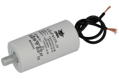 Kondensator; silnikowy (rozruchowy); CBB60; 4,5uF; 450V AC; fi 30x60mm; z przewodami; śruba bez nakrętki; JYC; RoHS Nr kat.: 36295 Nr katalogowy: 36295 Ilość minimalna: 1 Wielokrotność: 1