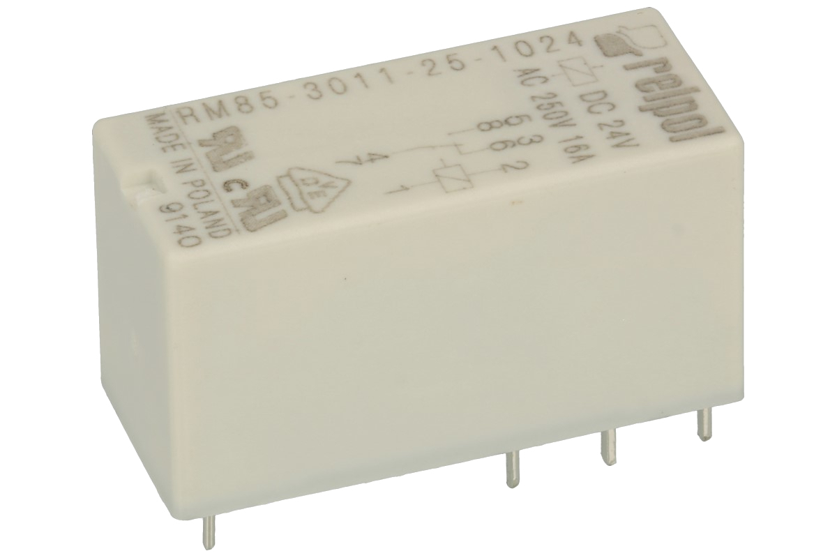 Przekaźnik; elektromagnetyczny miniaturowy; RM85-3011-25-1024; 24V; DC; 1 styk przełączny; 16A; 250V AC; 16A; 24V DC; do druku (PCB); do gniazda; Relpol; RoHS Przekaźnik; elektromagnetyczny miniaturowy; RM85-3011-25-1024; 24V; DC; 1 styk przełączny; 16A; 250V AC; 16A; 24V DC; do druku (PCB); do gniazda; Relpol; RoHS