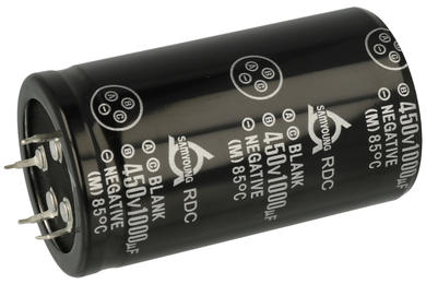 Kondensator; elektrolityczny; SNAP-IN; 4-pin; 1000uF; 450V; RDC; RDC450VN4T1000M40x70; 20%; fi 40x71mm; przewlekany (THT); luzem; -40...+85°C; 2000h; Samyoung; RoHS Nr kat.: 41301 Nr katalogowy: 41301 Ilość minimalna: 1 Wielokrotność: 1