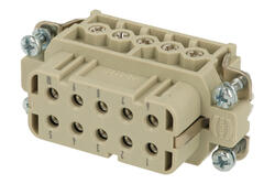 Plug; Han A; 09200102612; 10 ways; 10A; polycarbonate; straight; screw; 16A; 250V; grey; silver plated; 0,75÷2,5mm2; IP65; Harting; RoHS Item ID: 15280 Item ID: 15280 MOQ: 1 Multiple: 1