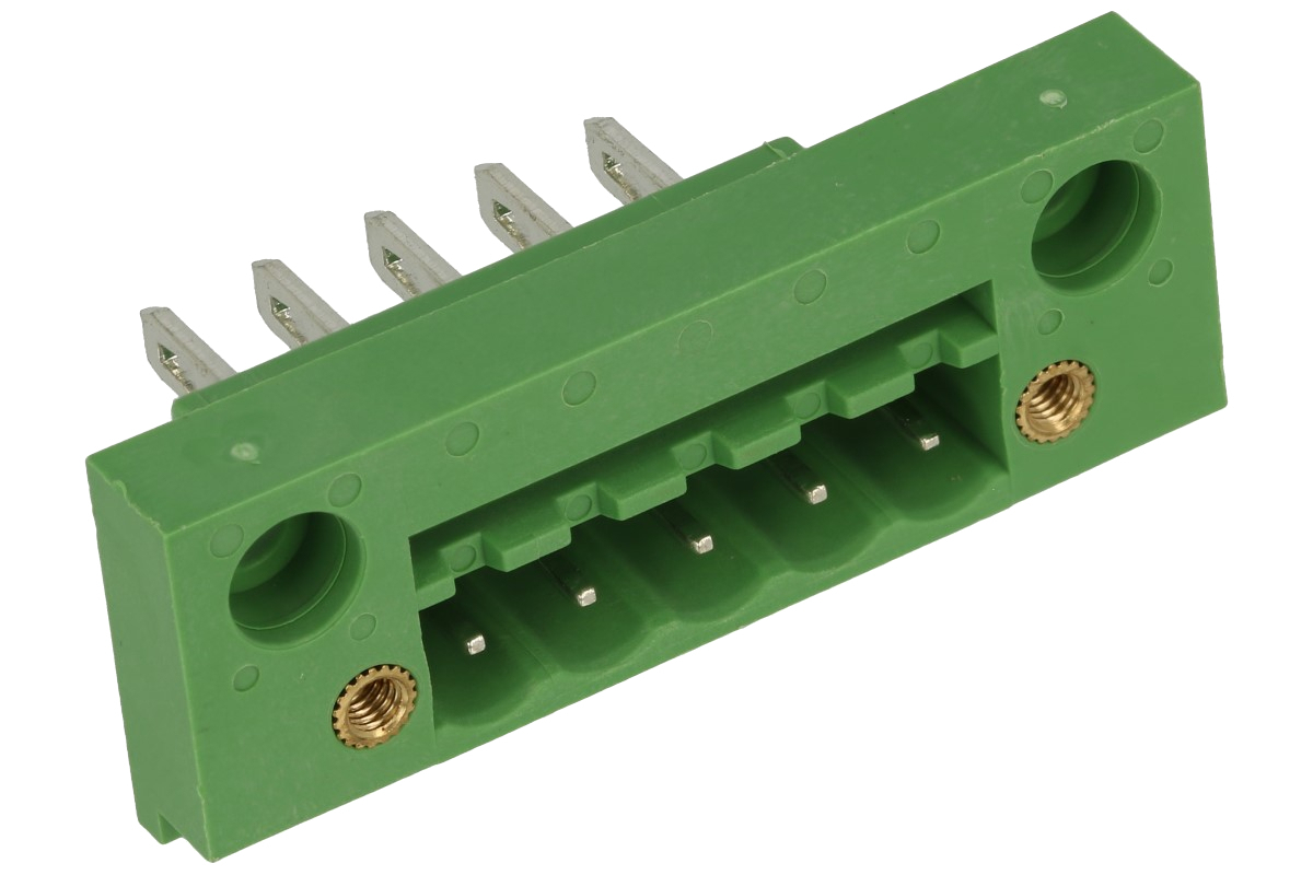 Terminal block; EDK-5.08-05P-4S; 5 ways; R=5,08mm; 17,4mm; 15A; 300V; for cable; angled 90°; square hole; slot screw; screw; vertical; 2,5mm2; green; KLS; RoHS