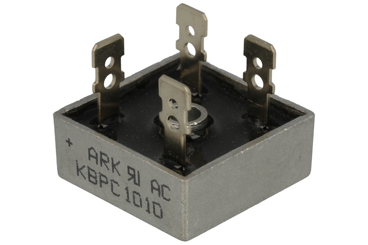 Bridge rectifier; KBPC1010; 10A; 1000V; cube; connectors; typ FM 28,3x28,3x11mm; RoHS Item ID: 37172 Item ID: 37172 MOQ: 1 Multiple: 1