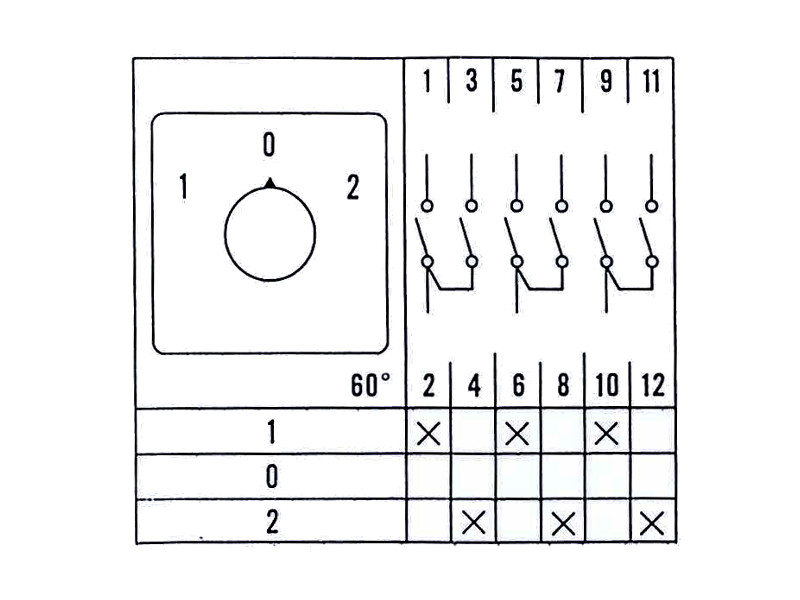 | Switch; cam; rotary; LW26-10-M0-F/3P 01; 2 positions; OFF-ON; 60°; bistable; panel mounting; 3 ways; 2 layers; screw; 10A; 440V AC; black; 8mm; 30x30mm; 38mm; Howo; RoHS | |||||||||||||||