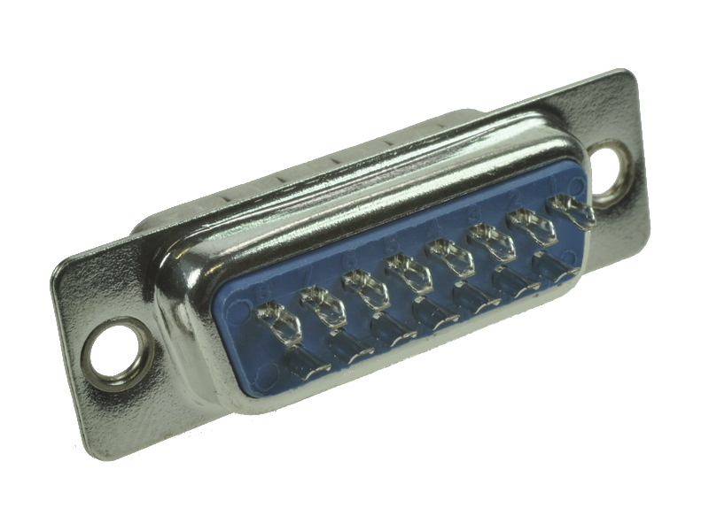 | Plug; D-Sub; Canon 15p; 15 ways; for cable; solder; straight; blue; plastic; screwed; RoHS | |||||||||||||||