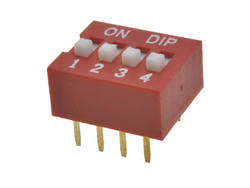 | Switch; DIP switch; 4 ways; DIPS4CD; red; through hole; h=5,5 + knob 1,1mm; 25mA; 24V DC; white; KLS; RoHS | |||||||||||||