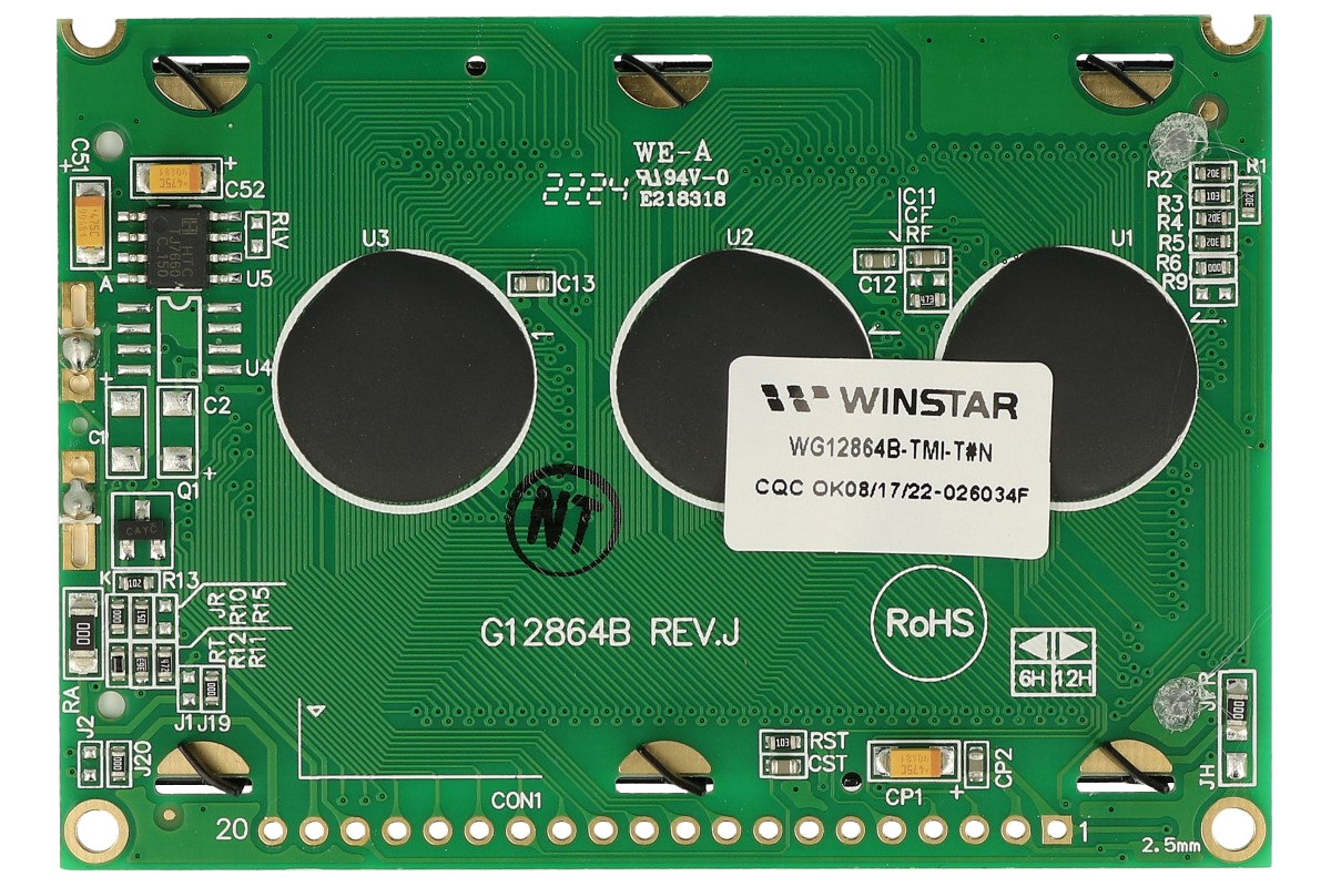 | Display; LCD; graphical; WG12864B-TMI-TN; white; Background colour: blue; LED backlight; 128x64; Winstar | |||||||||||||