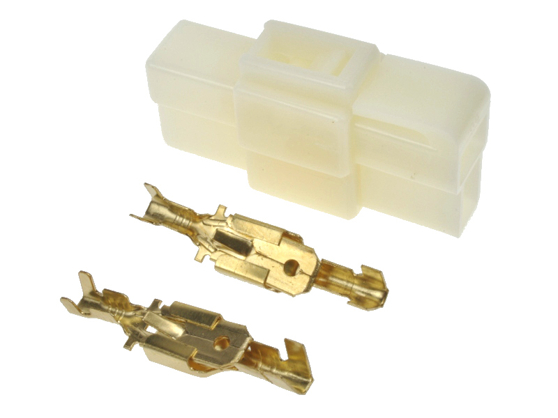 | Connector; 6,3x0,8mm; 1,5mm2; flat male/female; insulated; ZKPI63W2pT; white; straight; for cable; crimped; 2 ways; Talvico | |||||||||||||||