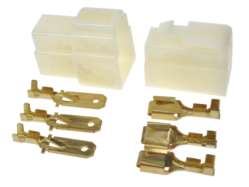 | Connector; 6,3x0,8mm; 1,5mm2; flat male/female; insulated; ZKPI63W3pT; white; straight; for cable; crimped; 3 ways; Talvico | |||||||||||||||