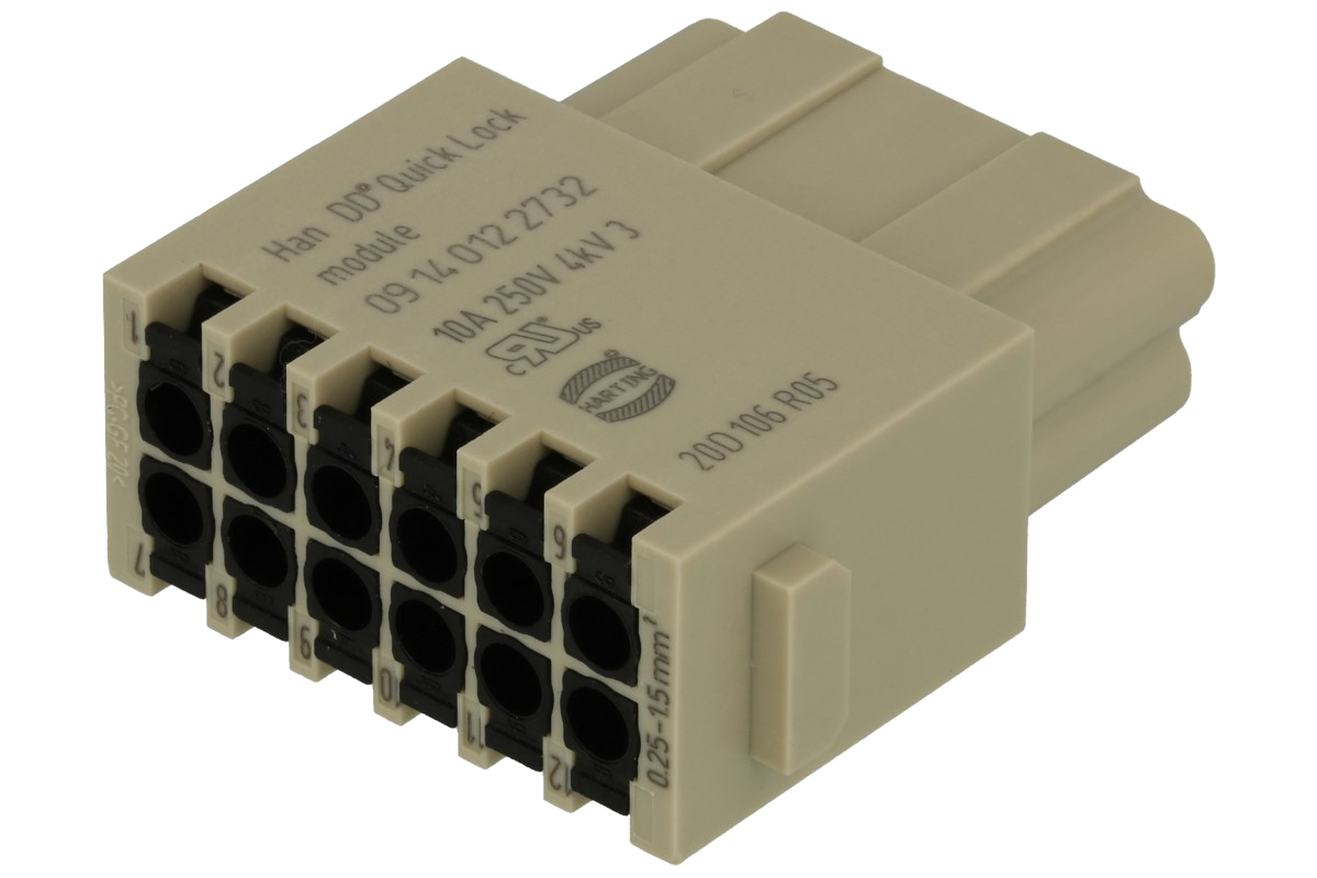 | Socket; Han DD; 09140123102; 12 ways; polycarbonate; straight; for cable; crimped; 10A; 250V; grey; Harting; RoHS | |||||||||||||