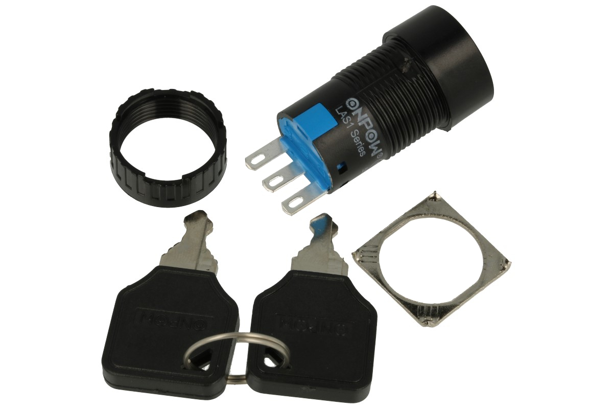 | Switch; key switch; LAS1-AY-11Y/21; ON-ON; 1 way; 90°; 2 positions; bistable; panel mounting; solder; 0,1A; 250V AC; 16mm; 40mm; plastic; IP40; Onpow | |||||||||||||||