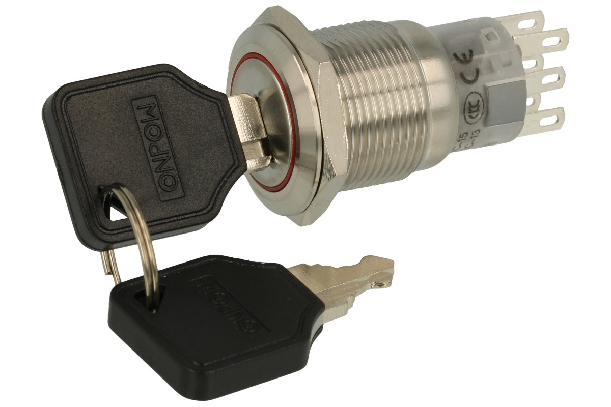 | Switch; key switch; LAS1-AGQ-22Y/21; ON-ON+ON-ON; 2 ways; 90°; 2 positions; bistable; panel mounting; solder; 5A; 250V AC; 19mm; 36mm; metal; IP65; Onpow | |||||||||||||||