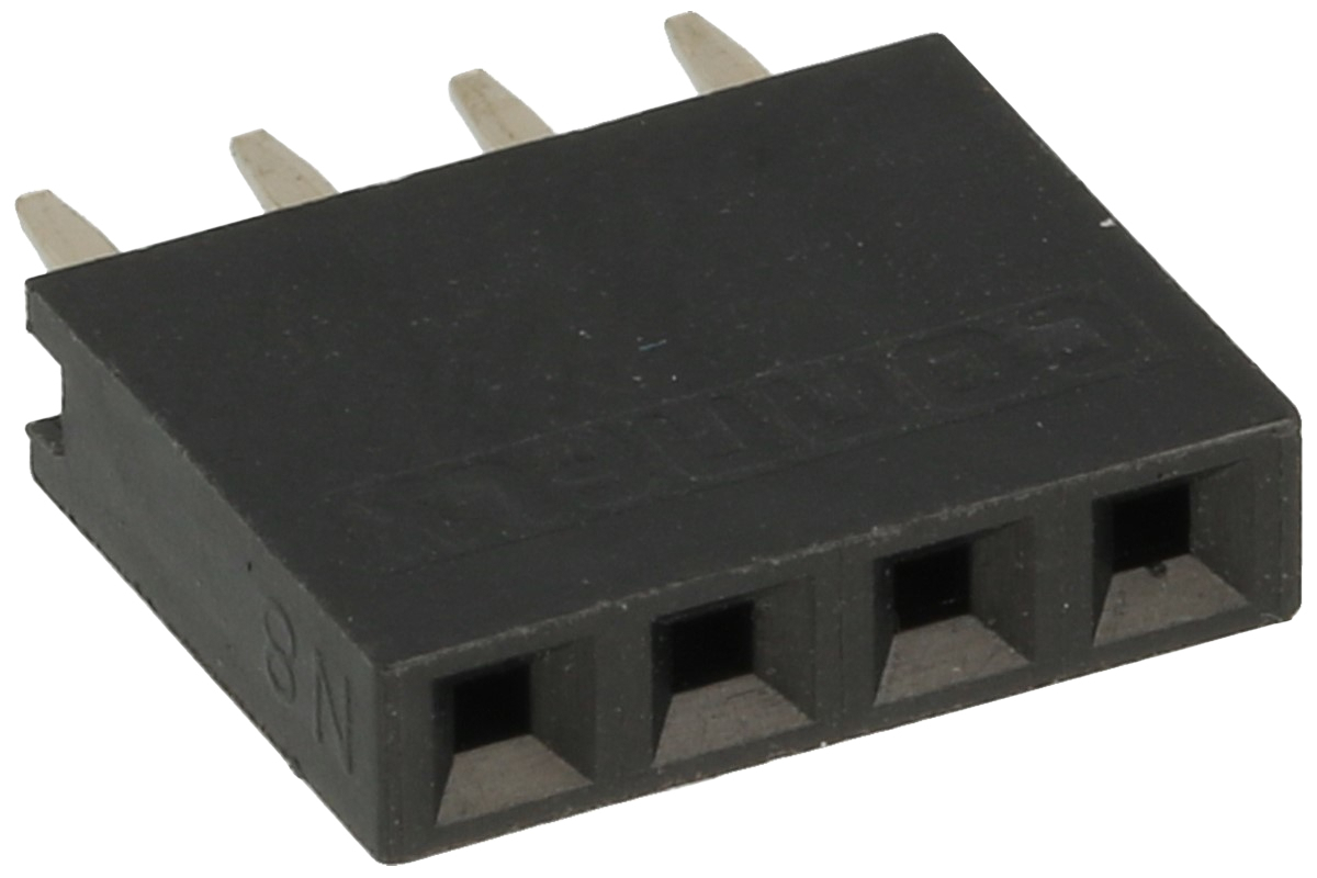 | Socket; pin; PBS04S; 2,54mm; black; 1x4; straight; 8,5mm; 3mm; through hole; gold plated; RoHS | |||||||||||||