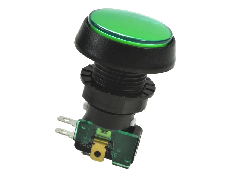 | Switch; push button; 910-2-10-1C2 GREEN 24V LED; ON-(ON); green; LED 24V backlight; green; 4,8x0,8mm connectors; 2 positions; 10A; 250V AC; 25mm; 56mm; Highly | |||||||||||||