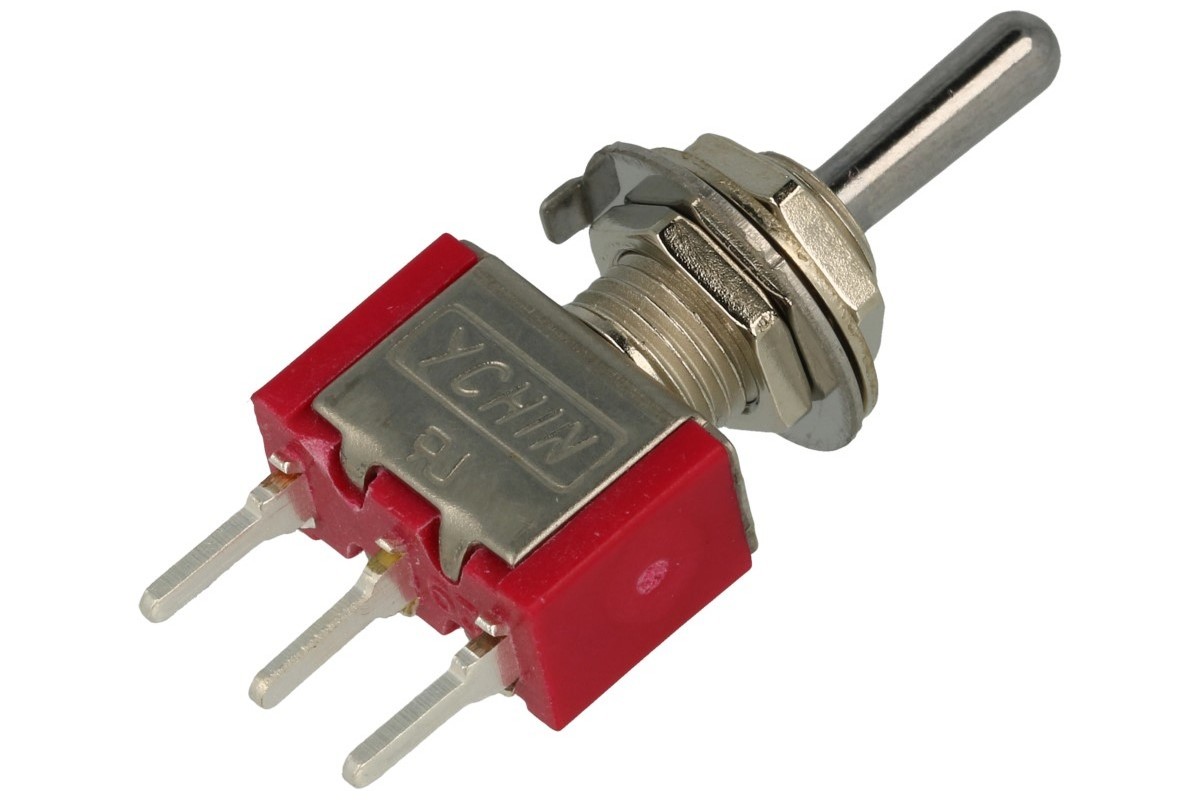 | Switch; toggle; T80-8014A-T1-B1-M1; 3*1; (ON)-OFF-(ON); 1 way; 3 positions; momentary; panel mounting; solder; 2A; 250V AC; red; 13mm; Highly; RoHS | |||||||||||||||