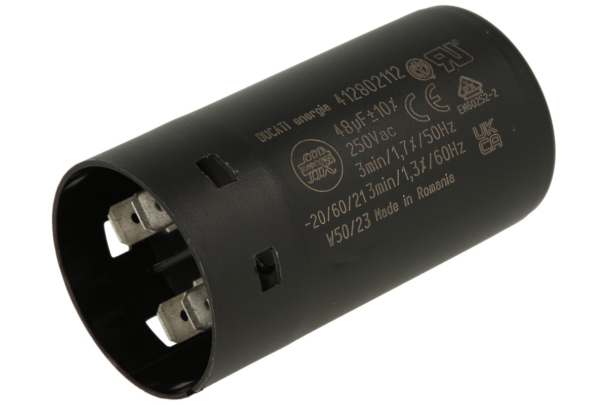 | Kondensator; silnikowy (rozruchowy); 412802112; 48uF; 250V AC; fi 36,5x68,5mm; konektory 6,3mm; Ducati; RoHS | |||||||||||||||