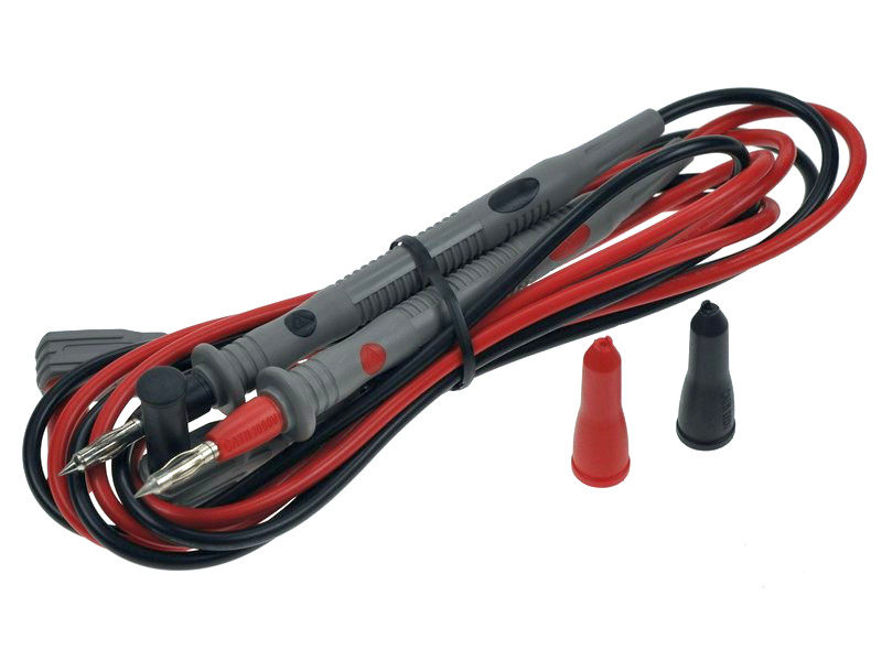| Przewody pomiarowe; T-3030; do miernika; 2mm; bezpieczny; kątowy; 1,2m; PVC; 0,75mm2; czarny i czerwony; 10A; 1000V; mosiądz niklowany; Mastech | |||||||||||||||