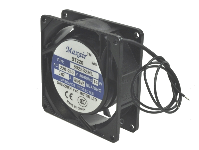 | Wentylator; 8038S2HL; 80x80x38mm; ślizgowe; 230V; AC; 18W; 40,8m3/h; 31dB; 110mA; 2400RPM; 2 przewody; Maxair (Ya-Cool); RoHS | |||||||||||||||