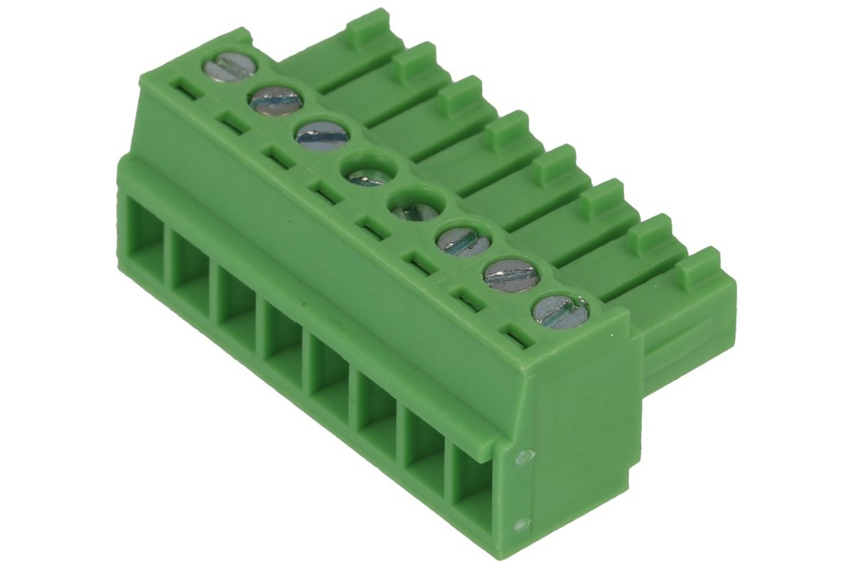 | Łączówka; 15EGTK-3.5-08P; 8 torów; R=3,50mm; 15,4mm; 8A; 125V; na przewód; kątowe 90°; otwór kwadratowy; śruba prosta; śrubowy; pionowy; 1,5mm2; zielony; Golten; RoHS | |||||||||||||||