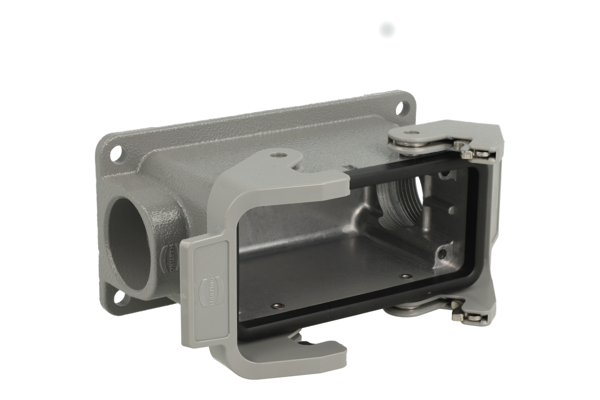 | Obudowa złącza; Han B; 09300240271; 24B; metal; na panel; 2 boczne wyjścia przewodu; z 2 klamrami; wyjście na dławnicę PG29; szary; IP65; Harting; RoHS | |||||||||||||